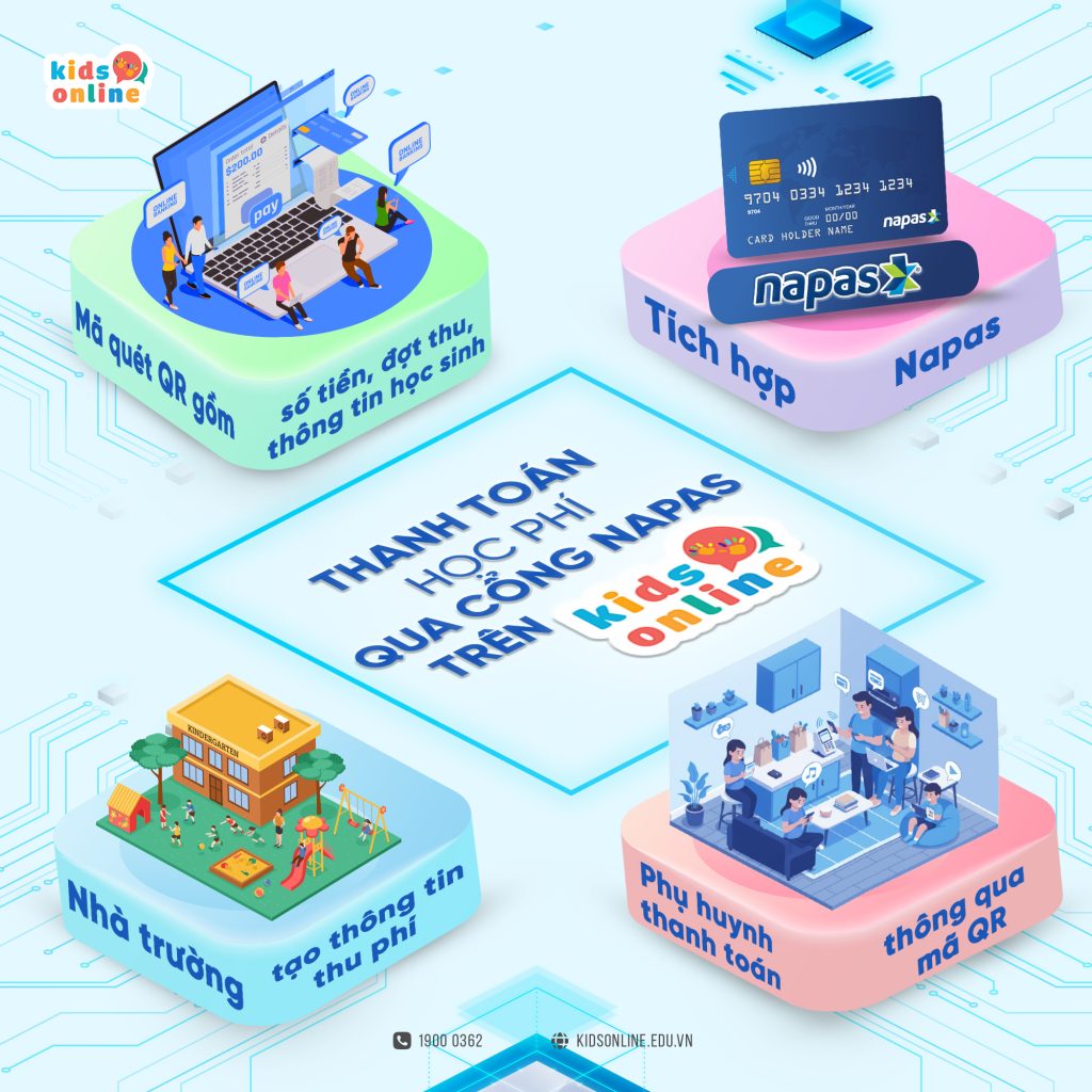 Từ tháng 9 năm 2025, KidsOnline chính thức kết nối với Napas – cổng thanh toán quốc gia – đánh dấu bước tiến quan trọng trong số hóa hoạt động tài chính của trường mầm non.