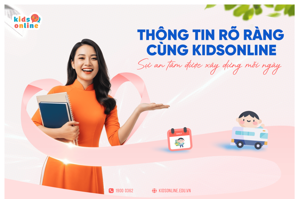 Khi kết hợp ba nhóm tính năng: Thông báo – Tin tức – Lời nhắn, Đăng ký đón về và Đơn xin nghỉ, KidsOnline giúp nhà trường xây dựng một quy trình quản lý thống nhất, rõ ràng và dễ kiểm soát. Phụ huynh được đồng hành sát sao cùng con, nắm bắt đầy đủ thông tin trong khi giáo viên có thêm thời gian tập trung vào chuyên môn giảng dạy.