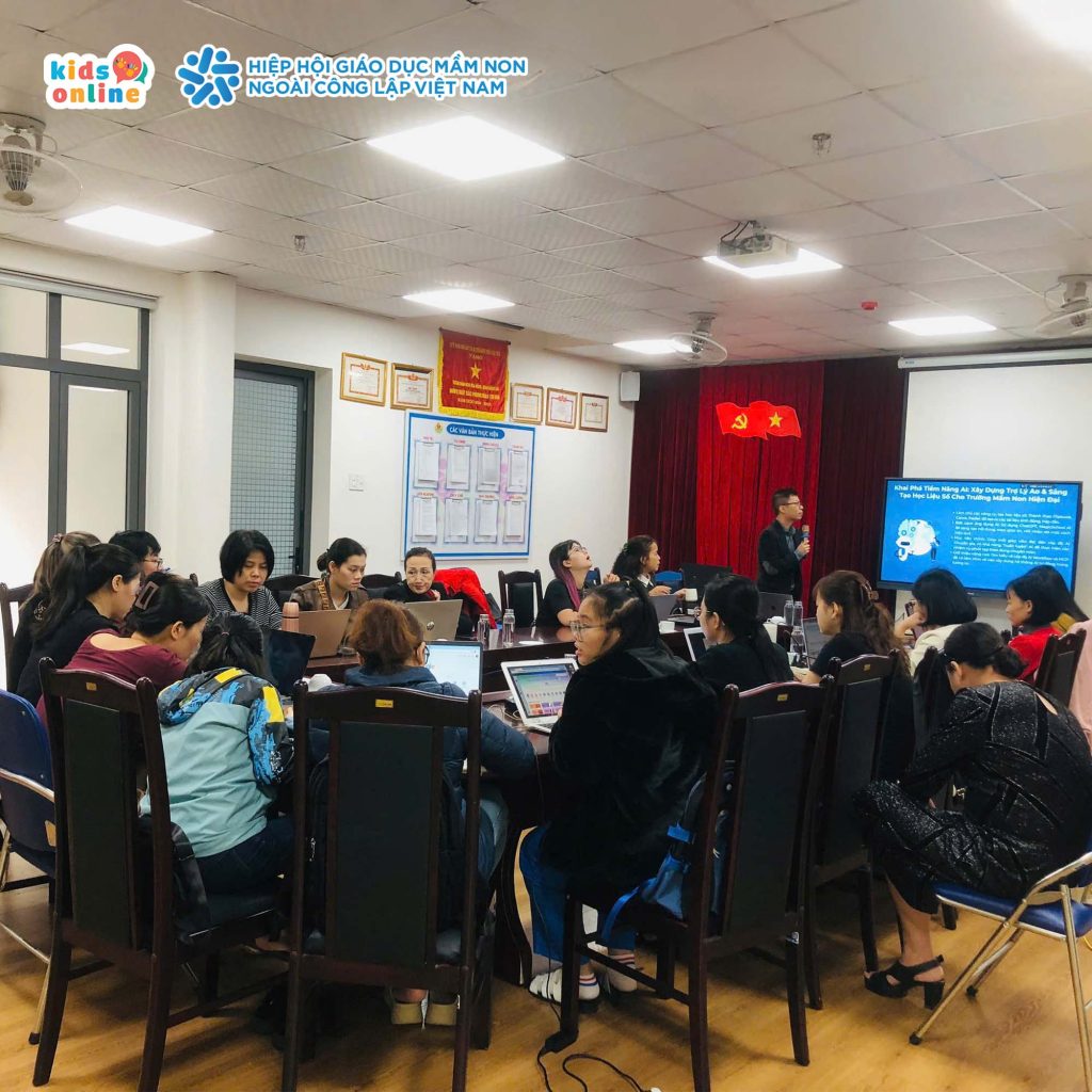 Ngày 1/11/2025, KidsOnline tiếp tục hành trình lan tỏa chuyển đổi số trong giáo dục mầm non với buổi đào tạo chuyên đề “Ứng dụng AI trong công việc của giáo viên mầm non” dành cho Trường Mầm non Hoa Hồng, quận Đống Đa, Hà Nội, nhằm giúp giáo viên tiếp cận – làm chủ – ứng dụng AI vào thực tiễn giảng dạy.